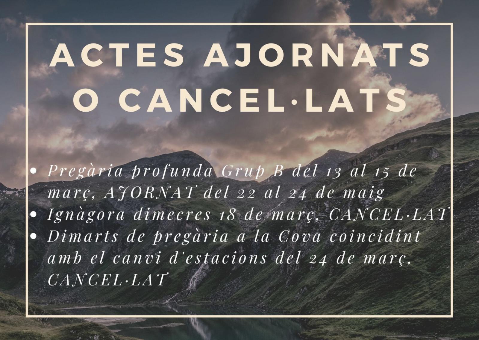 Degut a la situació actual que estem vivint a nivell mundial, alguns dels actes que teníem programats es veuran afectats amb ajornaments o cancel.acions.