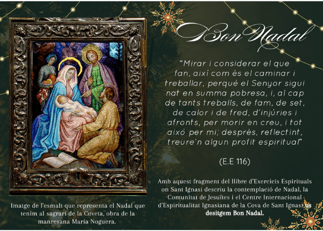 La Comunitat de Jesuïtes i el Centre Internacional d'Espiritualitat Ignasiana de la Cova Sant Ignasi us desitgem bon Nadal.